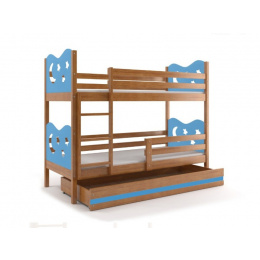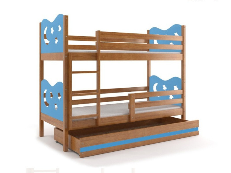 Postel z masivu pro 2 děti MAX 2 - Olše/Modrá