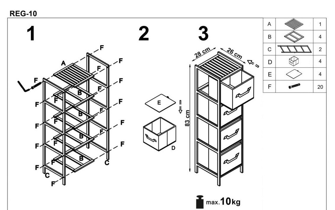 Regál REG10, přírodní/šedá