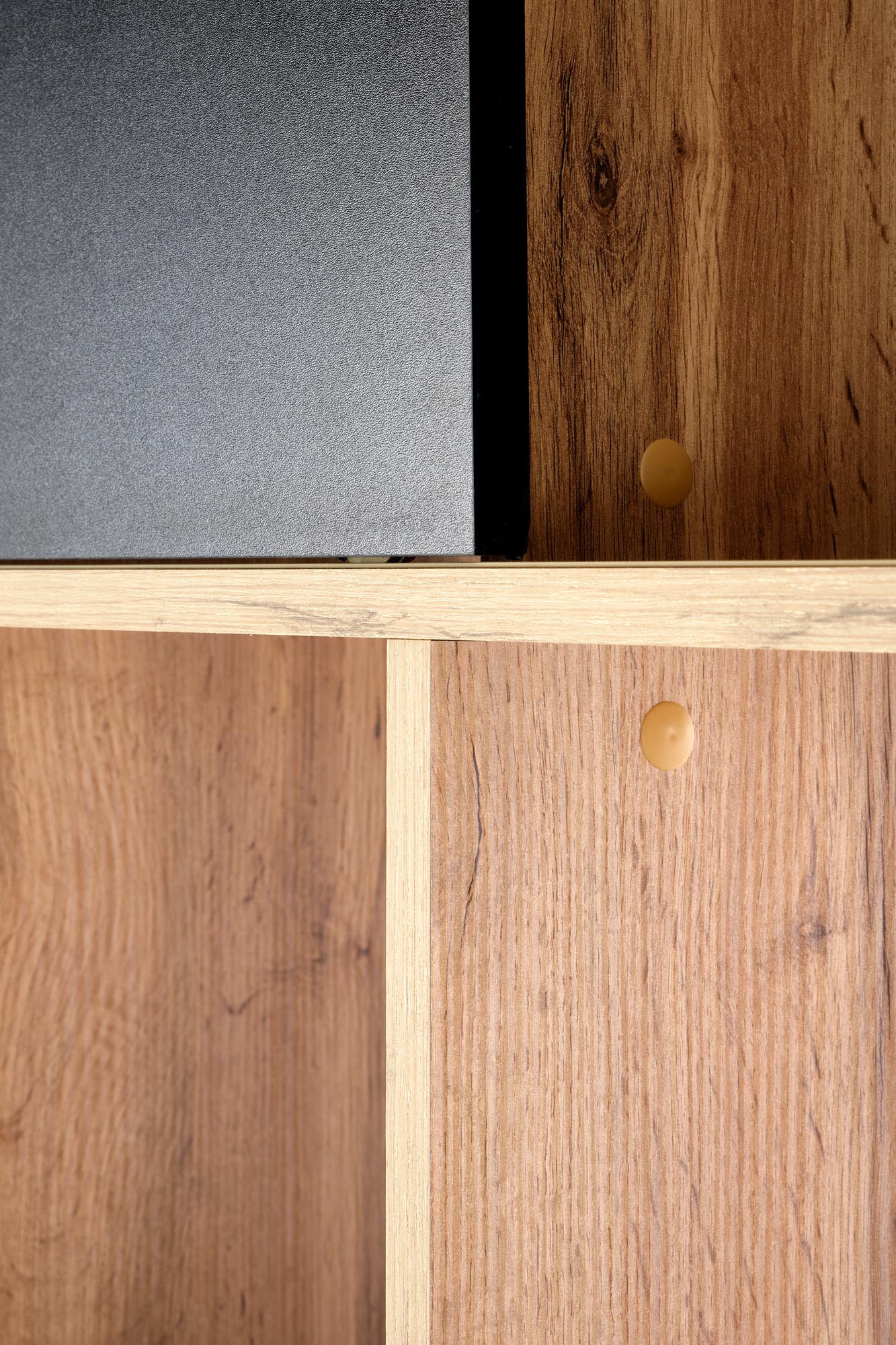 rozměry: 110/33/180 cm, posuvná čela, materiál: laminovaná nábytková deska, barvy: dub wotan / černá matná