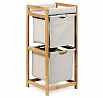 Multifunkční regál se dvěmi zásuvkami / boxy. Nosná konstrukce je vyrobena z masivního bambusu, lakovaného kvalitním trasparentním lakem. Bambus jako takový opdpuzuje vodu a touto povrchovou úpravou dosahuje velmi dobré voděodolnosti. Výsuvné boxy jsou vyrobeny ze středně hrubé látky v šedém odstínu se závěsným rámem z bambusu.Regál vhodný do koupelen, ale i do předsíní či místností, kde upotřebíte úložné prostory.Látkové boxy jsou prodyšné, jejich nosnost je až 3 kg, celková 6 kg. Ideálně regál k plné spokojenosti využijete k uložení ručníků, osušek nebo i části oblečení, popř. dalších věcí, dle potřeby.