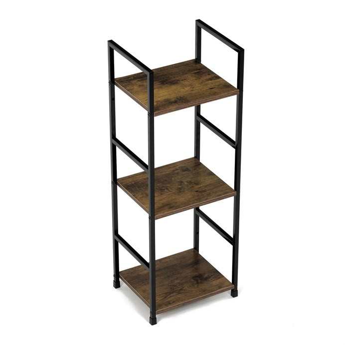 Představujeme vám praktický třípatrový regál značky Autronic v industriálním stylu. Tento elegantní kousek v hnědé barvě kombinuje pevný kovový rám s deskami z MDF s dekorem starého dřeva. Jeho kompaktní rozměry umožňují snadné umístění do každého obývacího pokoje, kde poskytne dostatek prostoru pro vaše dekorace, knihy či další drobnosti.