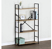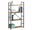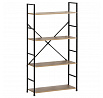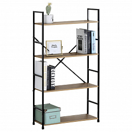 Regál s čtyřmi policemi nabízí dostatek odkládacího prostoru pro knihy, dekorace či úložné boxy. Police jsou vyrobeny z MDF desek s dekorem dubu, které doplňuje pevná kovová konstrukce v černém laku, jež zajišťuje stabilitu a dlouhou životnost. Otevřený design regálu umožňuje snadný přístup ke všem položkám a zároveň působí vzdušně v interiéru. Kovové rámy po stranách jsou doplněny o diagonální výztuhu pro zvýšení pevnosti. Díky kombinaci přírodního dekoru a industriálního kovu se regál hodí do moderních i rustikálních prostor.