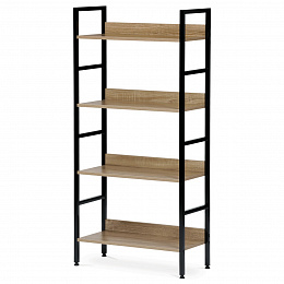 Regál s čtyřmi policemi v dekoru dub nabízí praktický odkládací prostor pro různé předměty v domácnosti či kanceláři. Police jsou vyrobeny z MDF desek s povrchovou úpravou v přírodních hnědých odstínech dubu, které dodávají nábytku příjemný a nadčasový vzhled. Stabilní kovová podnož v černém laku zajišťuje pevnost a dlouhou životnost regálu, přičemž otevřená konstrukce umožňuje snadný přístup a dobrou cirkulaci vzduchu kolem uložených věcí. Výška nožiček je nastavitelná, což pomáhá vyrovnat nerovnosti podlahy a zvyšuje stabilitu. Tento regál je vhodný pro uspořádání knih, dekorací i dalších drobných předmětů.