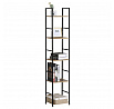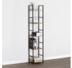 Regál s pěti policemi nabízí praktický odkládací prostor vhodný pro knihy, dekorace i další drobnosti. Police jsou vyrobeny z MDF desek s dubovým dekorem, které doplňuje pevná kovová konstrukce v černém laku, jež zajišťuje stabilitu a dlouhou životnost. Otevřená konstrukce umožňuje snadný přístup ke všem položkám a zároveň působí vzdušně v interiéru. Díky kombinaci přírodních odstínů dubu a černé barvy kovu se regál hodí do moderních i industriálních prostor. Výška a rozměry polic jsou navrženy tak, aby pojaly různé typy předmětů a zároveň šetřily místo.