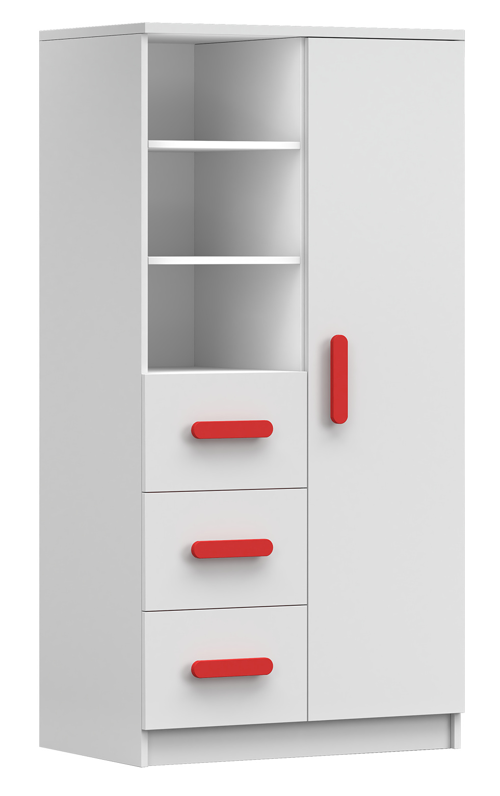 Regál 80 3S1D SMYK I - 05, Bílá Mat/Červená