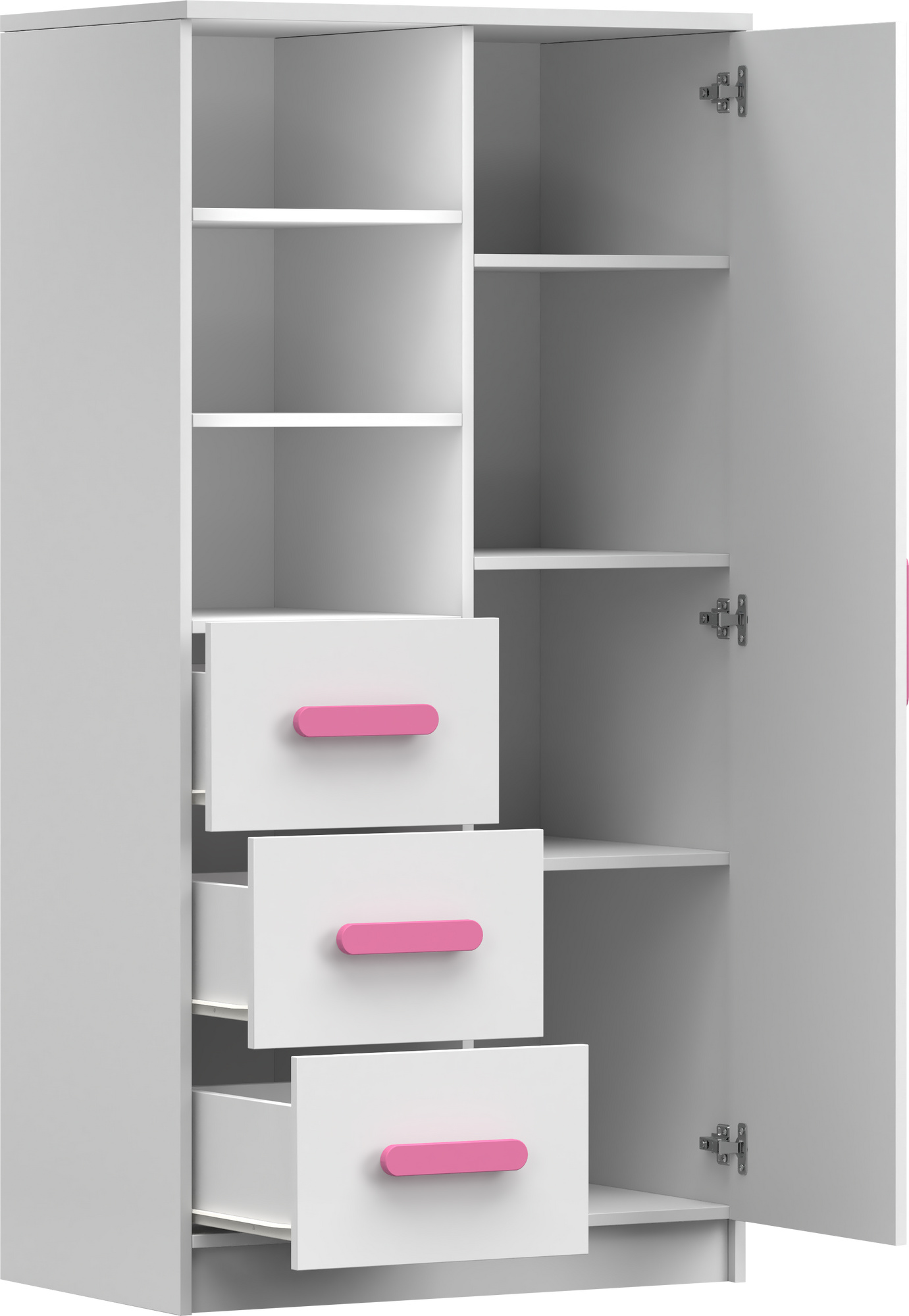 Moderní řada nábytku SMYK I potěší svou jednoduchostí a elegancí, kombinující klasickou bílou barvu korpusu a čel. Dalším prvkem, který odlišuje "Smyk I", jsou ozdobné dřevěné úchytky, které jsou k dispozici v různých barvách. Právě ty dodávají nábytku charakter a vytvářejí v dětském pokoji jedinečnou a jemnou atmosféru.