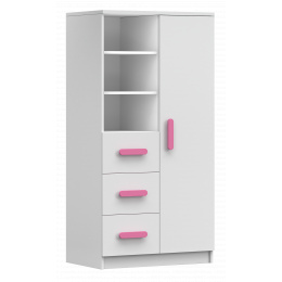Regál 80 3S1D SMYK I - 05, Bílá Mat/Růžová