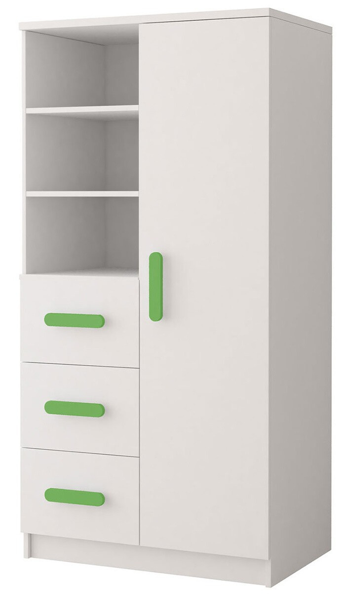 Regál 80 3S1D SMYK I - 05, Bílá Mat/Zelená