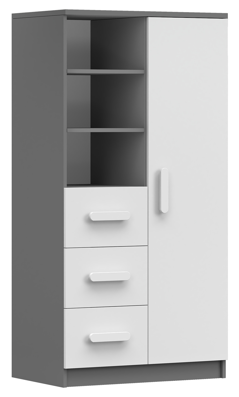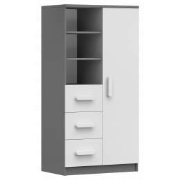 Regál 80 3S1D SMYK II - 05, Šedá/Bílá/Bílá