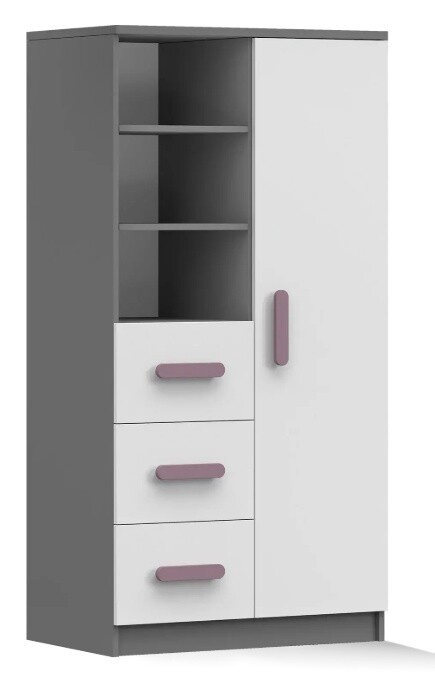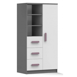 Regál 80 3S1D SMYK II - 05, Šedá/Bílá/Vřes