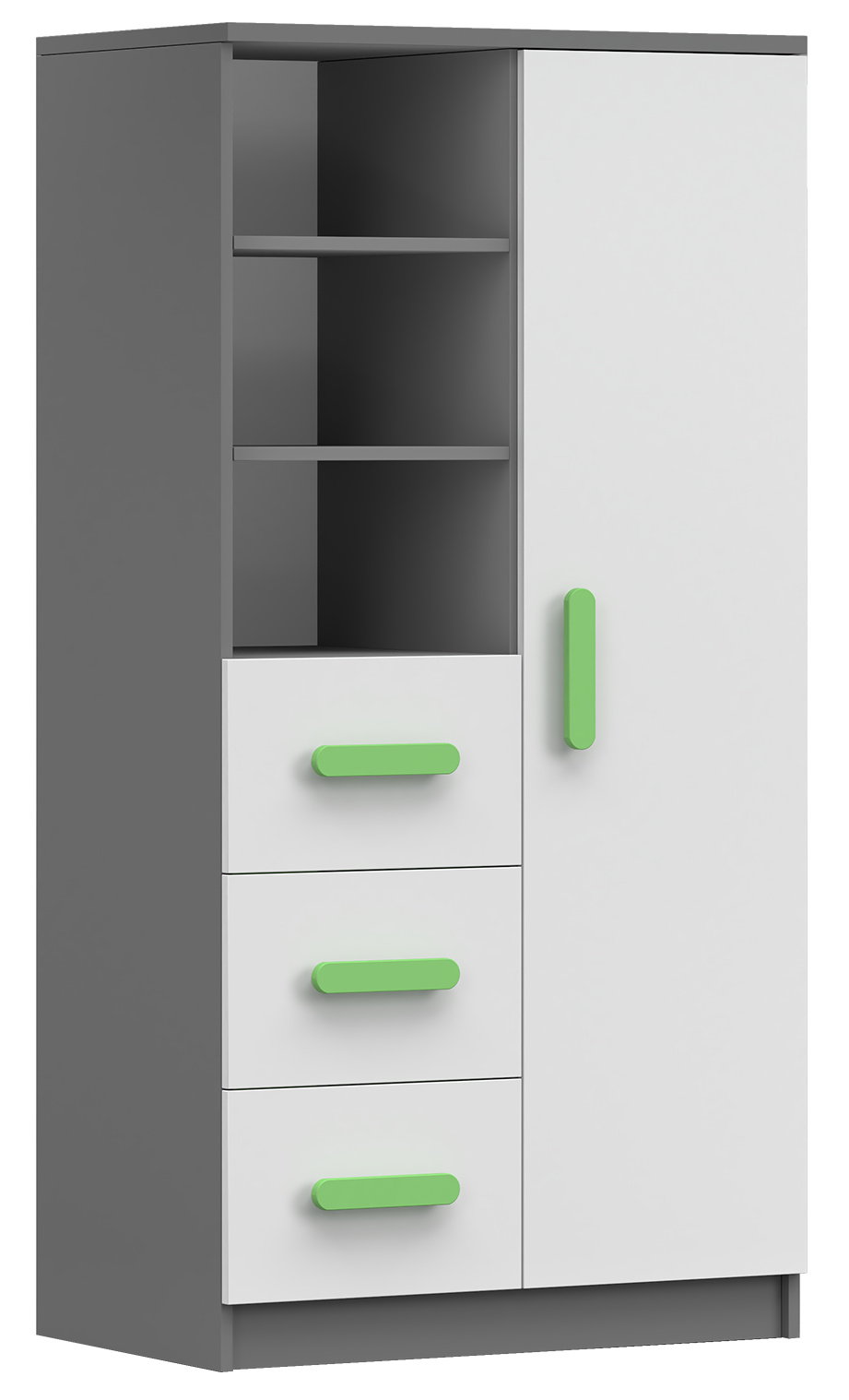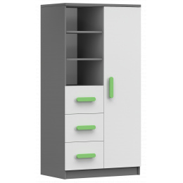 Regál 80 3S1D SMYK II - 05, Šedá/Bílá/Zelená
