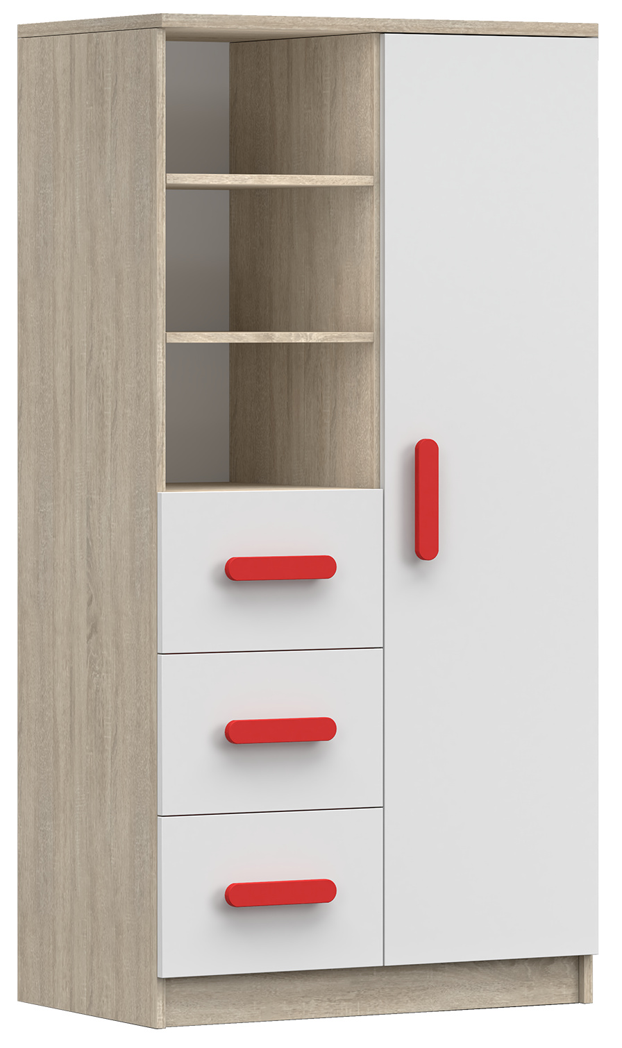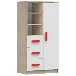 Regál 80 3S1D SMYK III - 05, Dub Sonoma/Bílá/Červená