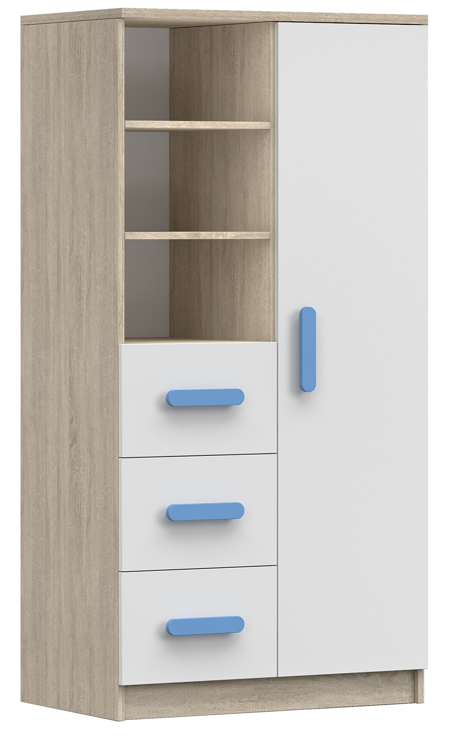 Regál 80 3S1D SMYK III - 05, Dub Sonoma/Bílá/Modrá