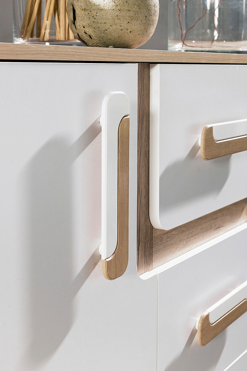 - Úchytky: Nábytek je vybavena úchytkami ze syntetického materiálu, které jsou nejen odolné, ale také příjemné na dotek. Jejich moderní design přispívá k celkovému estetickému dojmu.