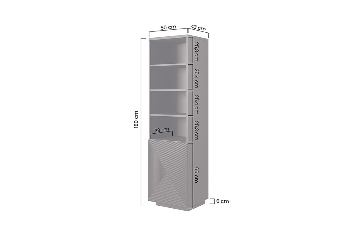 Regál Asha s rýhovaným čelem 50 cm - kašmír, Šířka: 50, Výška: 180, Hloubka: 43, Výška nožek: , Hloubka desky: , Montáž: