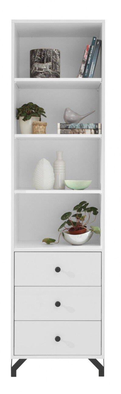 Regál BERGEN - BE4, Bílý Lux + Bílá vysoký lesk