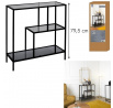 Regál Edison je kombinací černé kovové konstrukce se skleněnými policemi v kouřovém odstínu. Tvrzené sklo polic regálu je nejen bezpečným materiálem, ale také snadno udržovatelným v čistotě. Regál s nesymetrickou konstrukcí je nejen dobrým místem pro knihy, suvenýry nebo květiny. Bude také fungovat jako prvek oddělující obývací pokoj od jídelny v menším interiéru. Regál vyžaduje vlastní montáž. Maximální zatížení na jednu polici 5 kg. Rozměry kartonu: 37x14x91,5 cm. Hmotnost regálu 12 kg