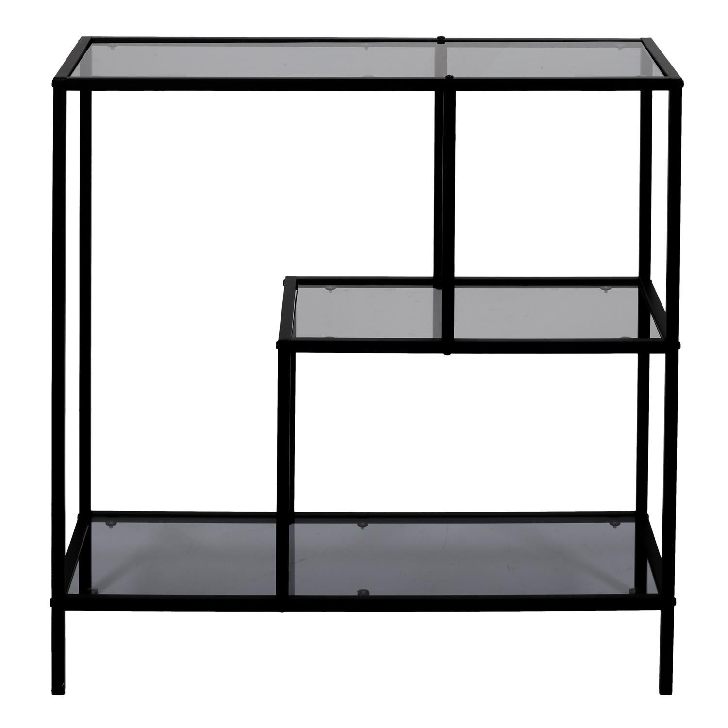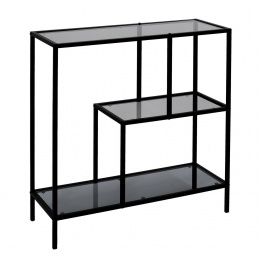 Regál Edison je kombinací černé kovové konstrukce se skleněnými policemi v kouřovém odstínu. Tvrzené sklo polic regálu je nejen bezpečným materiálem, ale také snadno udržovatelným v čistotě. Regál s nesymetrickou konstrukcí je nejen dobrým místem pro knihy, suvenýry nebo květiny. Bude také fungovat jako prvek oddělující obývací pokoj od jídelny v menším interiéru. Regál vyžaduje vlastní montáž. Maximální zatížení na jednu polici 5 kg. Rozměry kartonu: 37x14x91,5 cm. Hmotnost regálu 12 kg