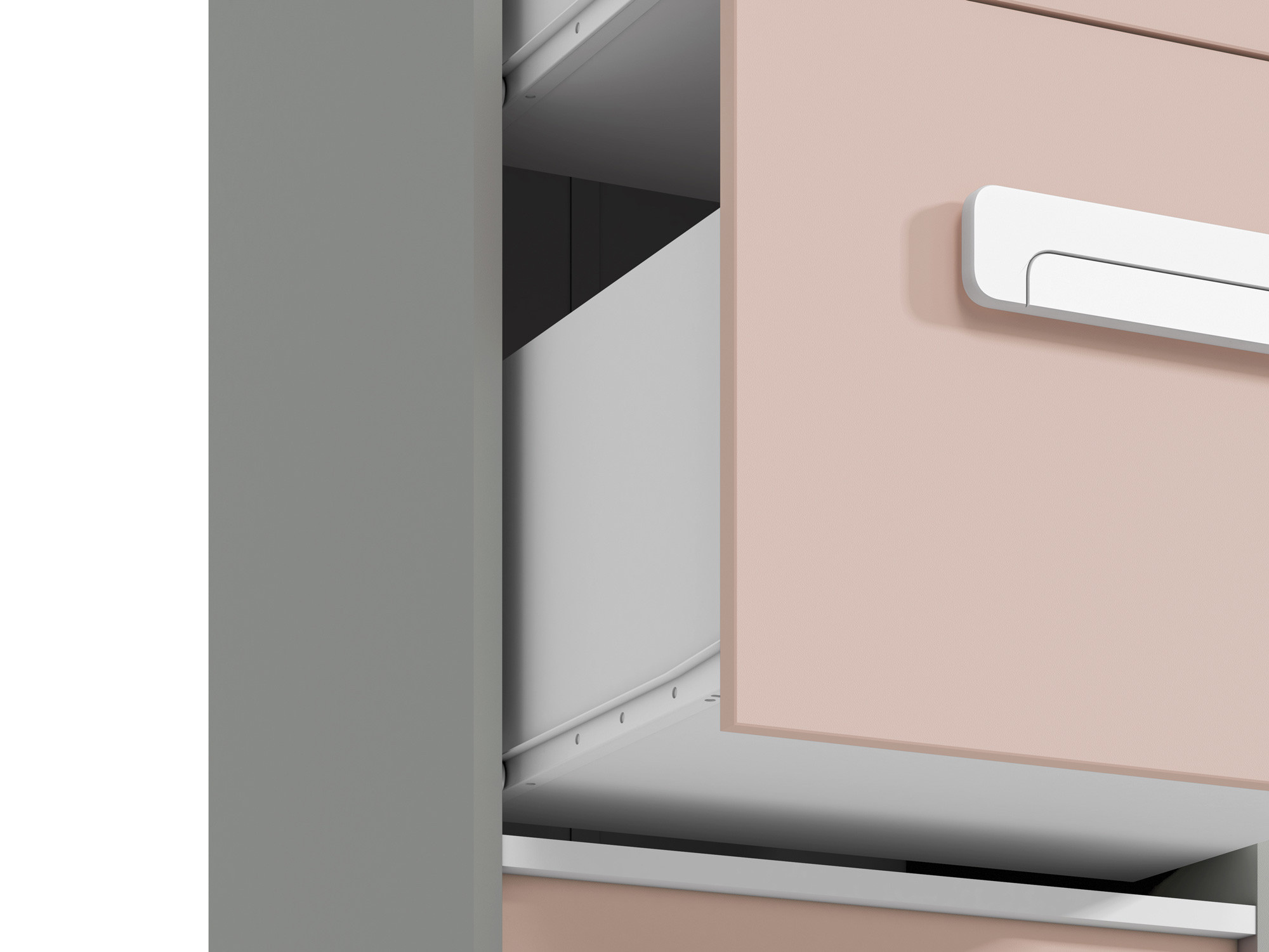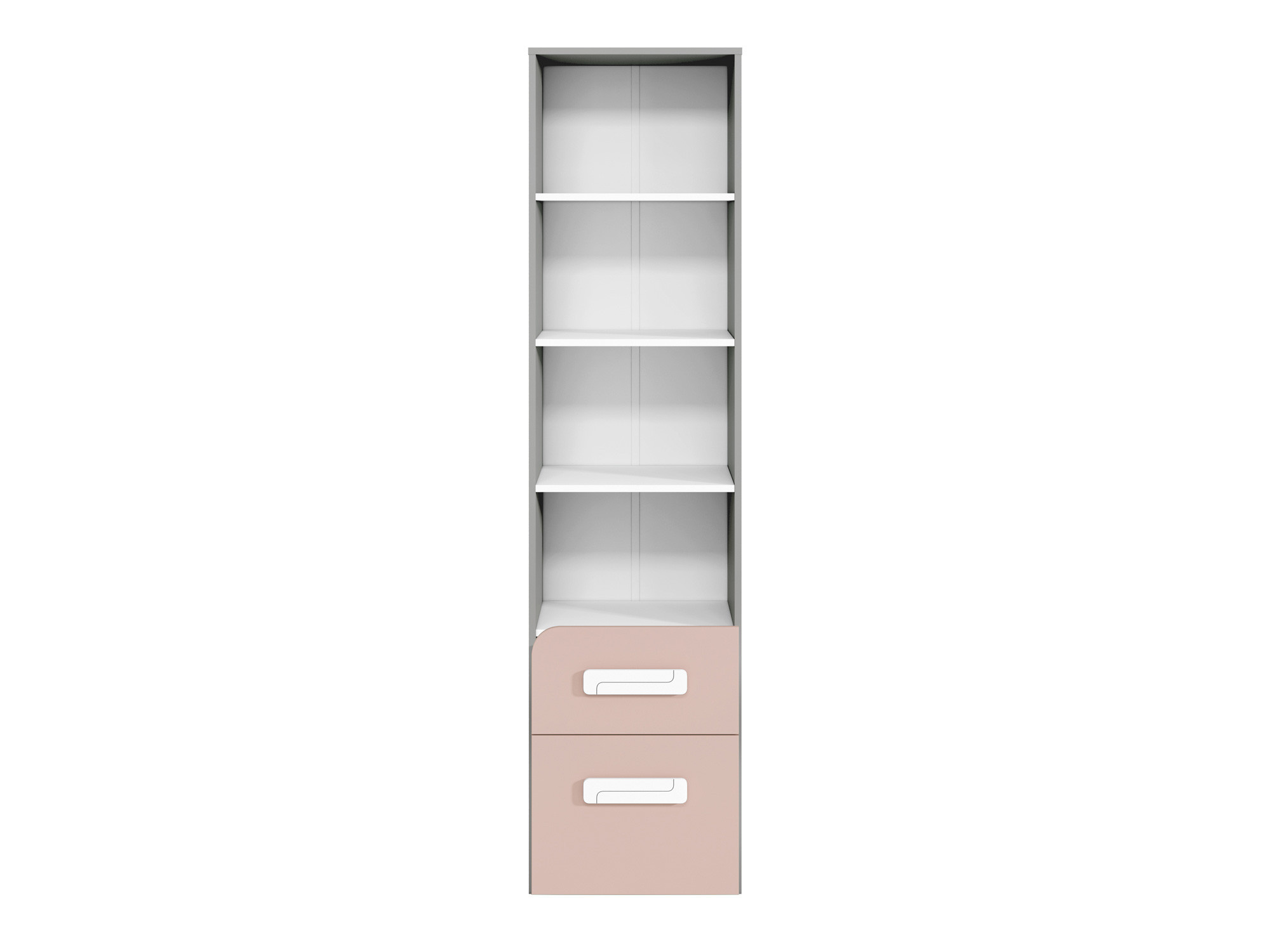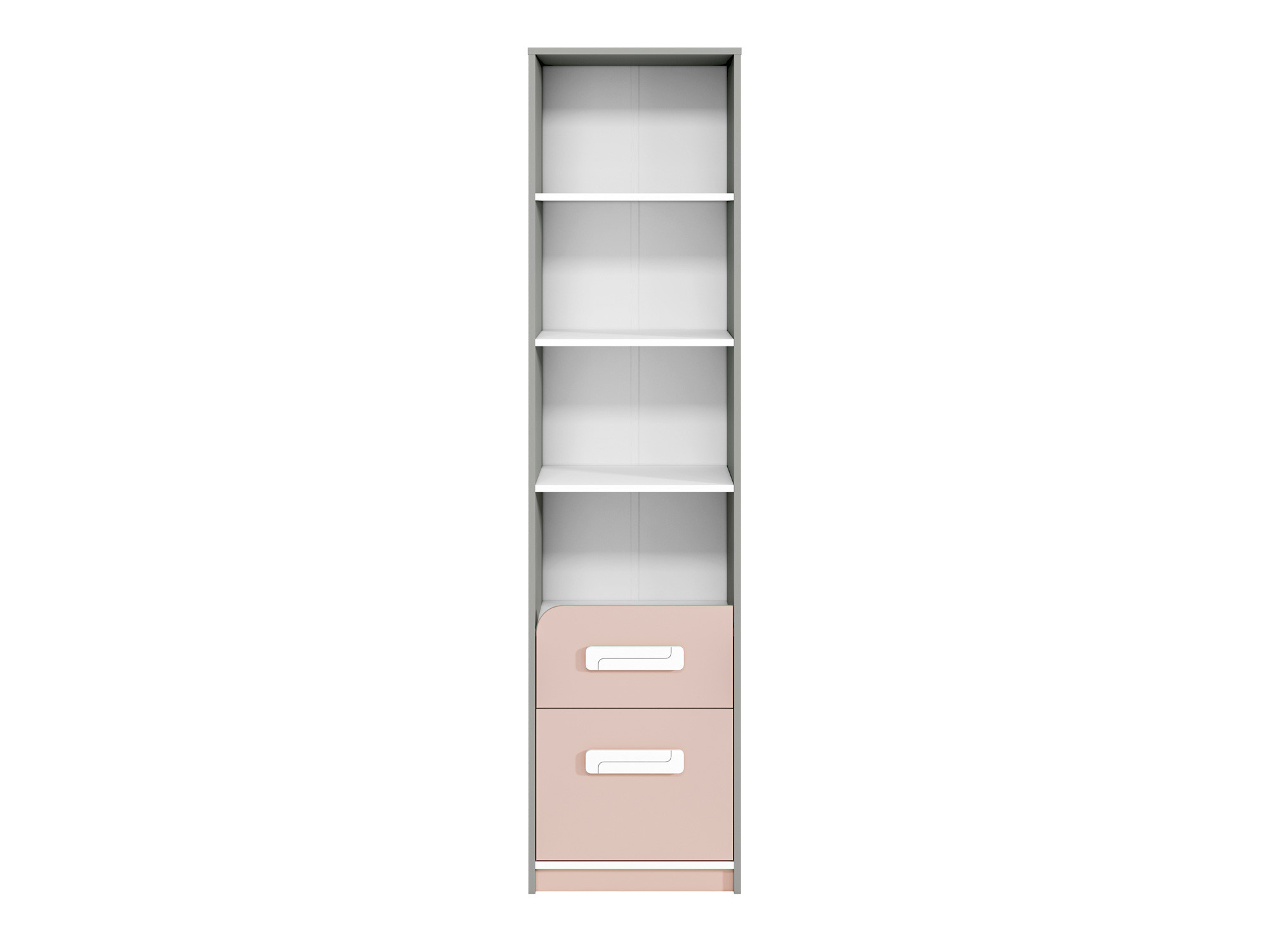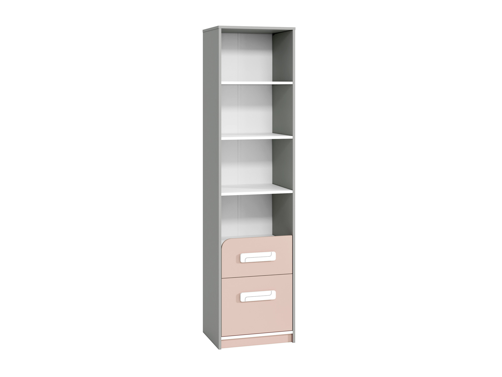 Knihovna z kolekce IQ 06-01 s pudrově zbarvenými čely byla navržena nejen pro nejmladší uživatele, ale také pro ty, kteří mají rádi barevné designové akcenty. Na otevřených policích můžete vystavit své oblíbené předměty nebo knihy. Zásuvky jsou zase ideální pro ukládání oblečení nebo doplňků.