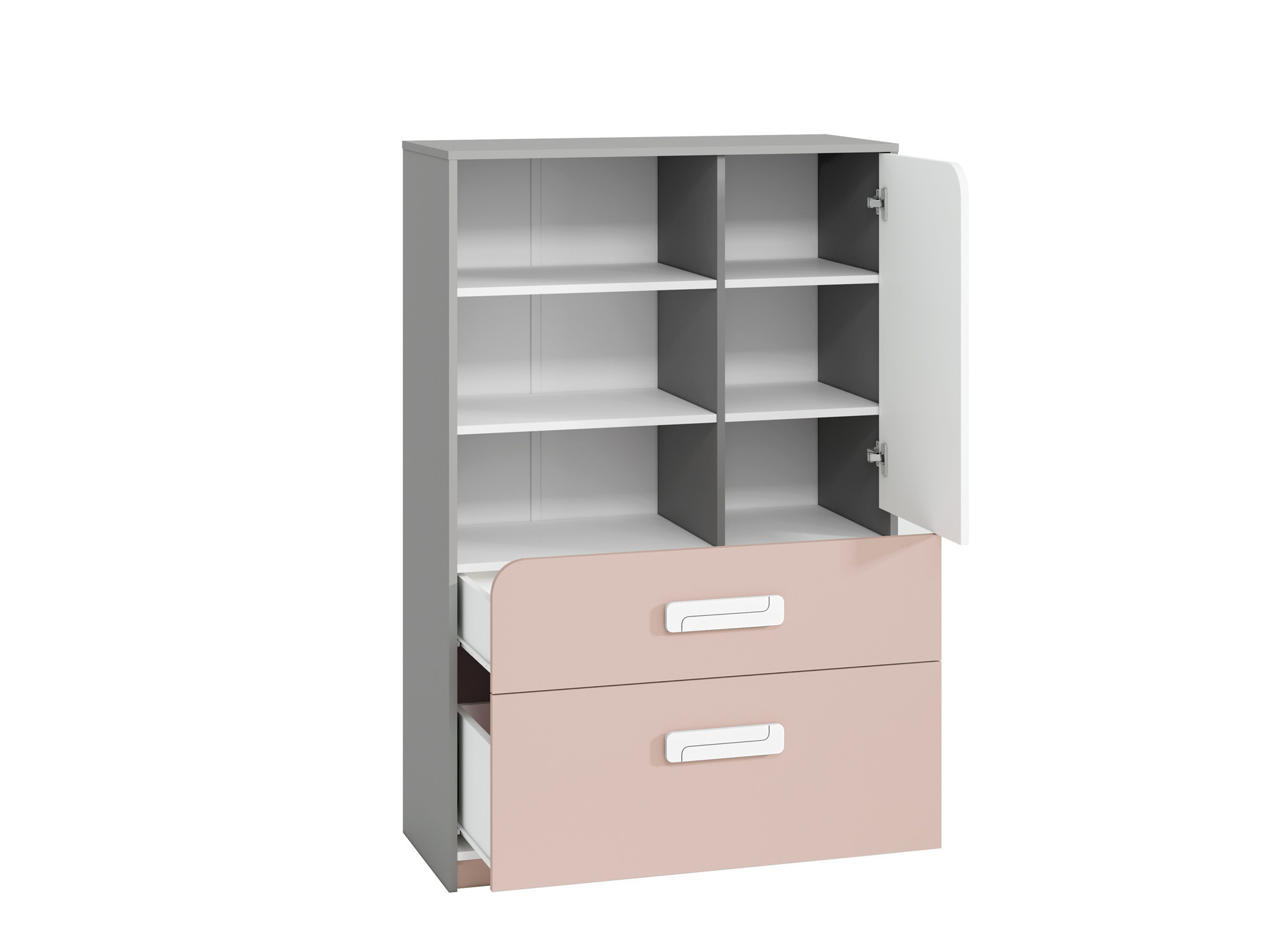 Komoda IQ 07-01 v pudrové barvě zaujme především zajímavým designem a živými barvami, které jsou přímo ideální pro dětský pokoj v každém věku. Díky svému jednoduchému designu tento nábytek nejen podtrhne estetiku pokoje, ale také umožní udržet pořádek, protože se do něj snadno vejdou četné doplňky každého teenagera.