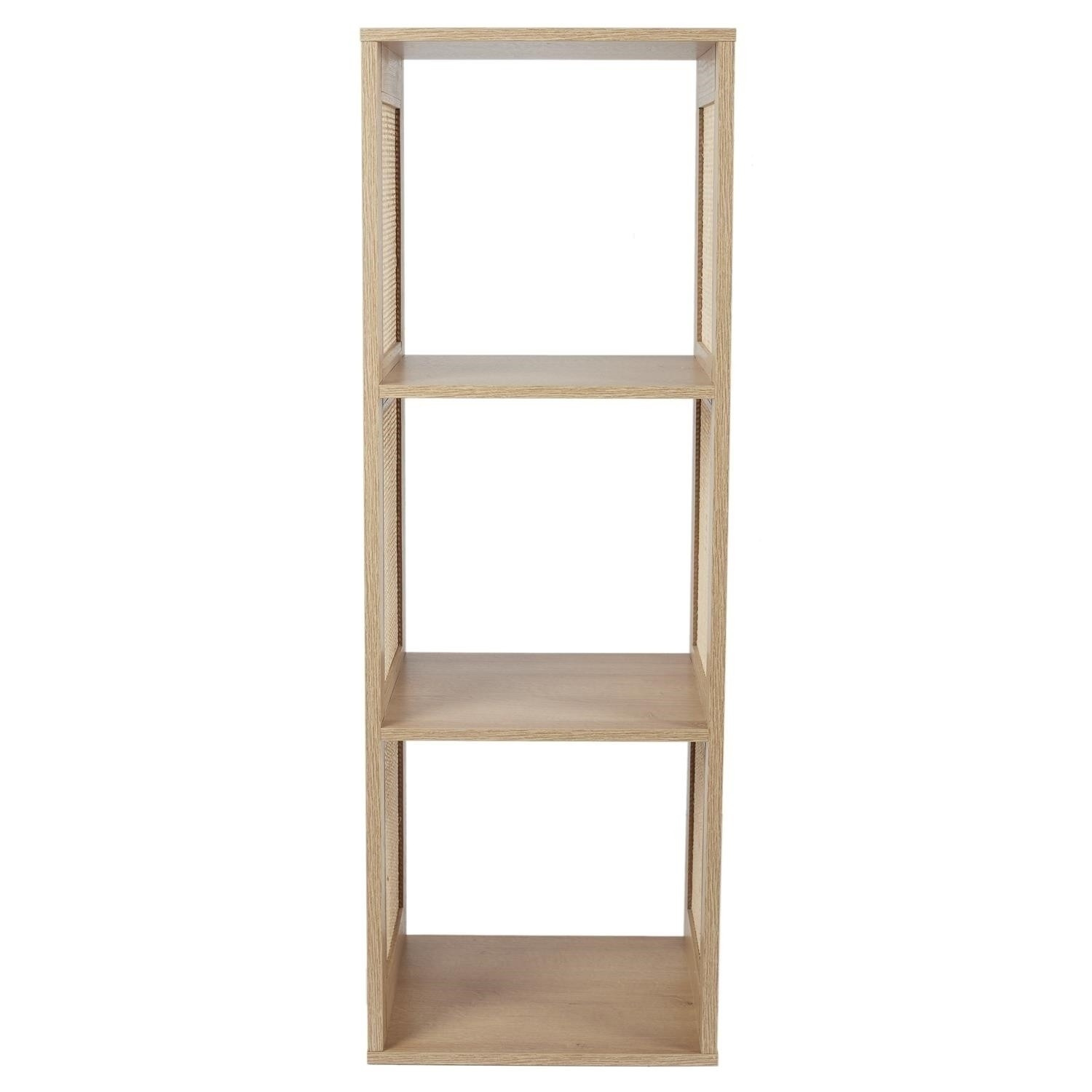Regál Kali s ratanovým povrchem je ideální kombinací odolné MDF desky s dýhou imitující dřevo a ratanových ozdobných boků. Spolupracující materiály vytvářejí nábytek ideální pro interiéry v přírodním stylu, tedy boho nebo skandi. Regál vyžaduje vlastní montáž. Do regálu jsou kompatibilní krabice o rozměrech 30x30x30 cm. Rozměry kartonu: 37,5x7,5x102,5 cm