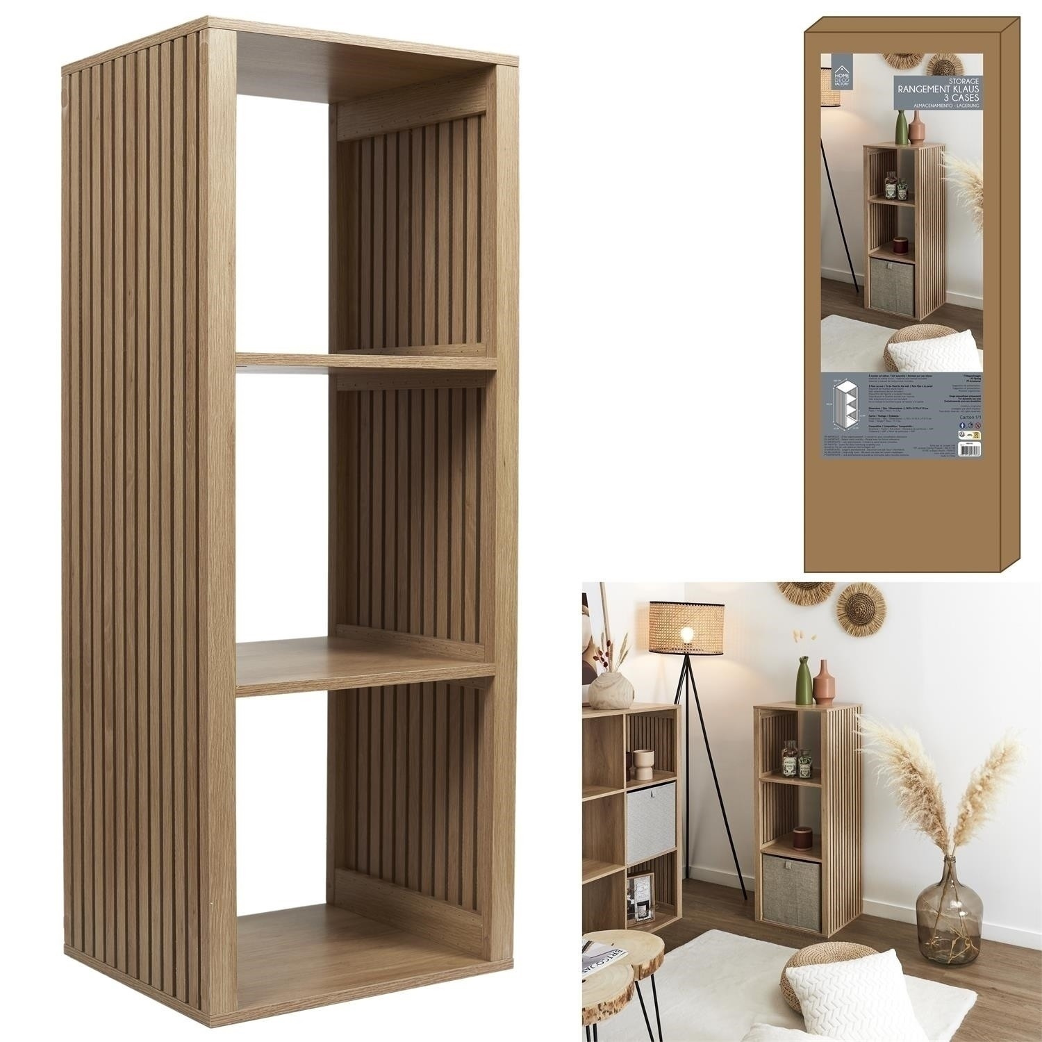Regál z široké kolekce Klaus je především moderní design s lamelovým zakončením. Regál se skládá ze 3 kubistických polic, na které kromě předmětů jako hodinky nebo knihy můžeme také vložit krabice do regálů. Materiál: MDF deska s dýhou imitující dřevo. Max. zatížení na 1 polici: 6 kg Vyžaduje montáž. Rozměry kartonu: 38x10,5x104,5cm, Hmotnost 12,7kg