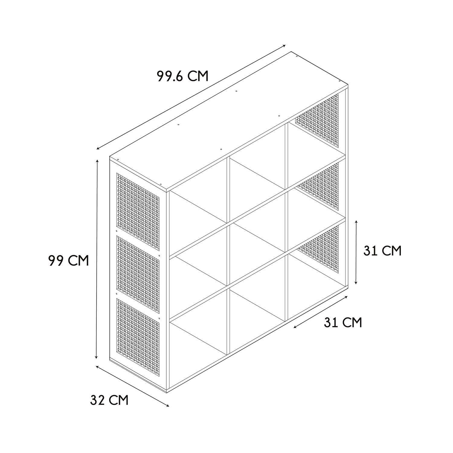 Regál z široké kolekce Klaus je především moderní design s lamelovým zakončením. Regál se skládá z 9 kubistických polic, na které kromě předmětů jako hodinky nebo knihy můžeme také vložit krabice do regálů. Materiál: MDF deska s dýhou imitující dřevo. Max. zatížení na 1 polici: 6 kg Vyžaduje montáž.