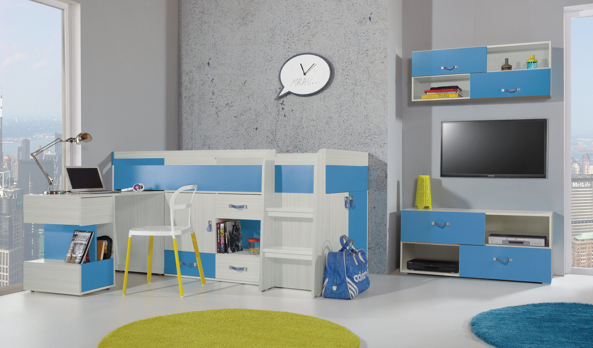Dětský nábytek Komi je vyroben z lamina a zakončen Abs lištou.