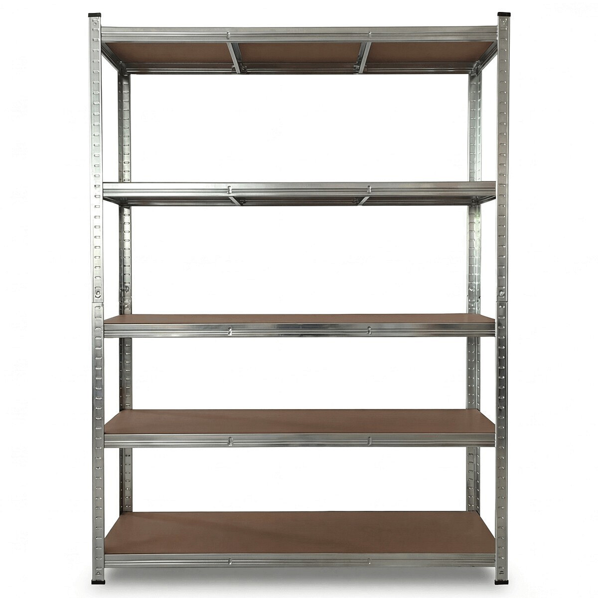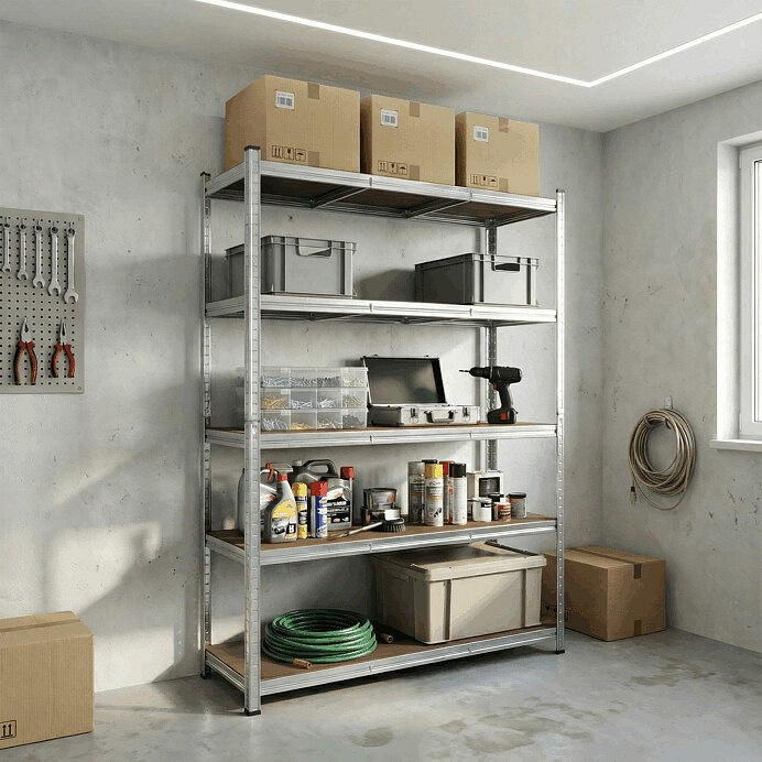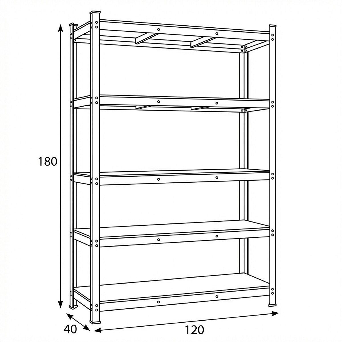 Regál o rozměrech 180 × 120 × 40 cm nabízí pět polic z MDF desek, které poskytují dostatek úložného prostoru pro různé předměty. Nosná konstrukce je vyrobena z pozinkované oceli v stříbrném provedení, což zajišťuje pevnost a stabilitu regálu i při vyšší zátěži. Police jsou pevně uchyceny v rámu s možností nastavení výšky podle potřeby. Regál je vhodný pro skladování v domácnostech, dílnách či kancelářích, kde je potřeba efektivně využít prostor. Plastové krytky na nohách chrání podlahu před poškozením a zvyšují stabilitu celého systému.