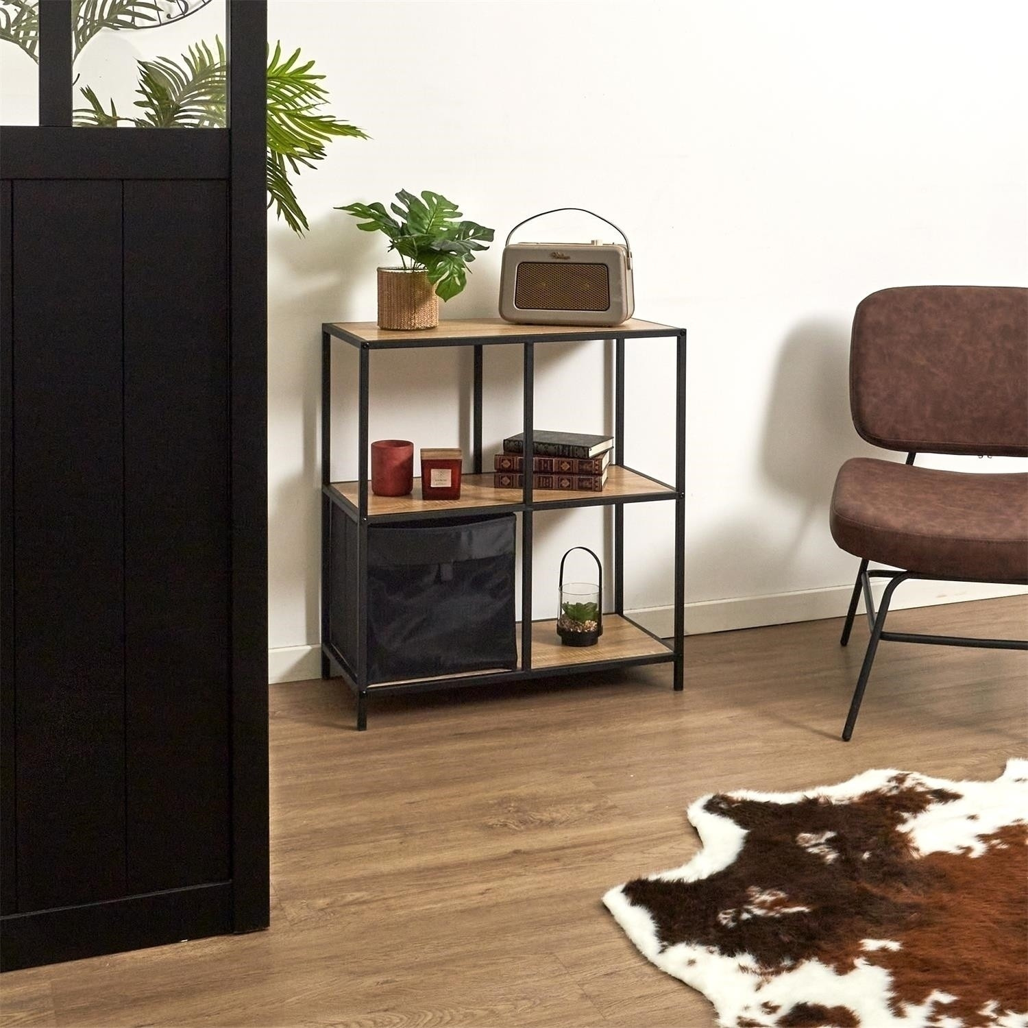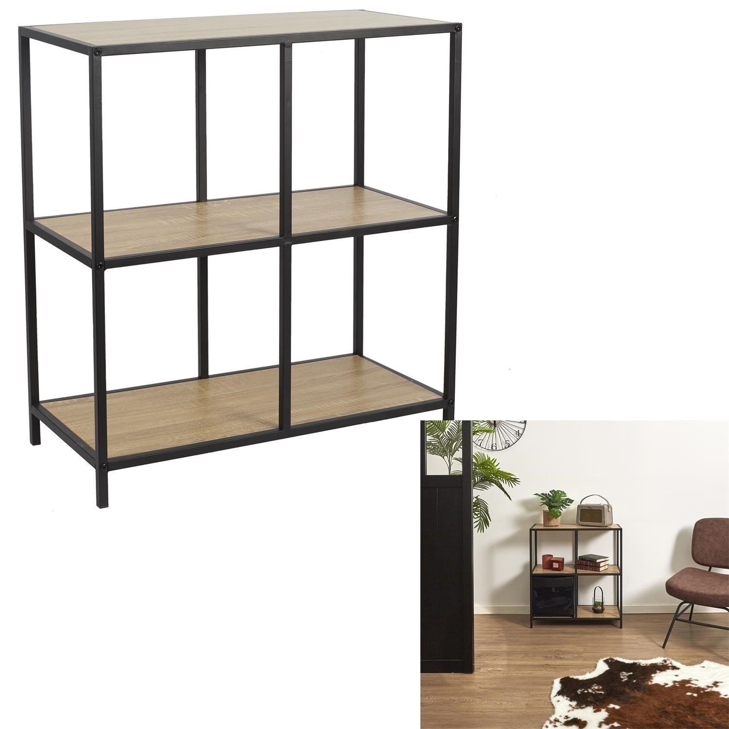 Regál Loka je kombinací minimalistického černého rámu a polic z odolné MDF desky s dýhou imitující přírodní dub. Kovový, práškově lakovaný černý rám je stabilní. Regál má nožky o výšce 5 cm. Vyžaduje vlastní montáž