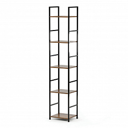 Regál s pěti policemi nabízí praktický odkládací prostor v industriálním stylu. Police jsou vyrobeny z MDF desek s dekorem starého dřeva v hnědém odstínu, které doplňuje černý lakovaný kovový rám zajišťující stabilitu a pevnost. Otevřená konstrukce umožňuje snadný přístup a přehledné uspořádání předmětů. Díky kombinaci materiálů je regál navržen pro dlouhou životnost a snadnou údržbu. Je vhodný do obývacích pokojů, pracovních koutů i kanceláří, kde vynikne jako funkční i designový prvek.