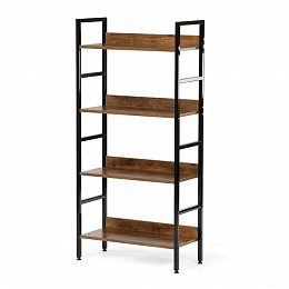 Regál s čtyřmi policemi nabízí praktický odkládací prostor v dekoru starého dřeva na deskách z MDF, které jsou doplněny o stabilní kovovou podnož v černém laku. Kombinace materiálů zajišťuje pevnost a dlouhou životnost, přičemž kovová podnož přispívá k celkové stabilitě regálu. Police jsou vhodné pro uložení knih, dekorací nebo dalších drobných předmětů, přičemž jejich povrch se snadno udržuje. Design regálu s otevřenými policemi umožňuje snadný přístup a zároveň působí vzdušně v interiéru. Rozměry a nosnost odpovídají běžným požadavkům na bytové regály.