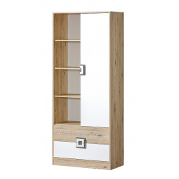 Regál NICO 04, Světlý Dub/Bílá/Šedá