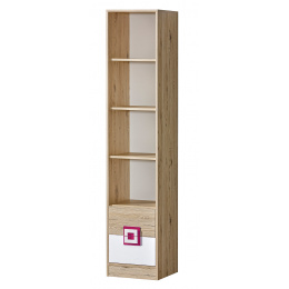Regál NICO 06, Světlý Dub/Bílá/Růžová