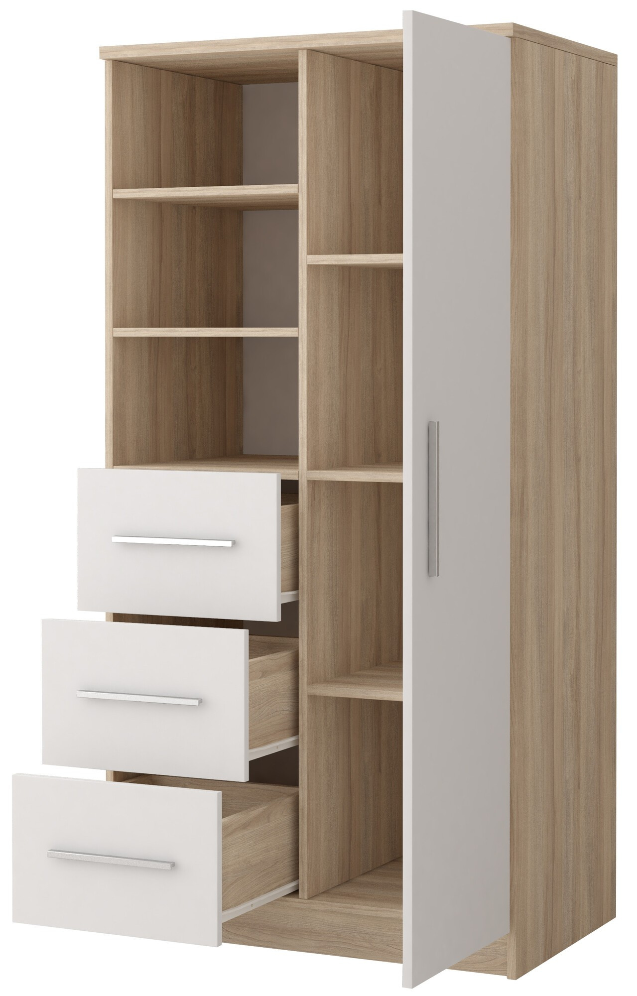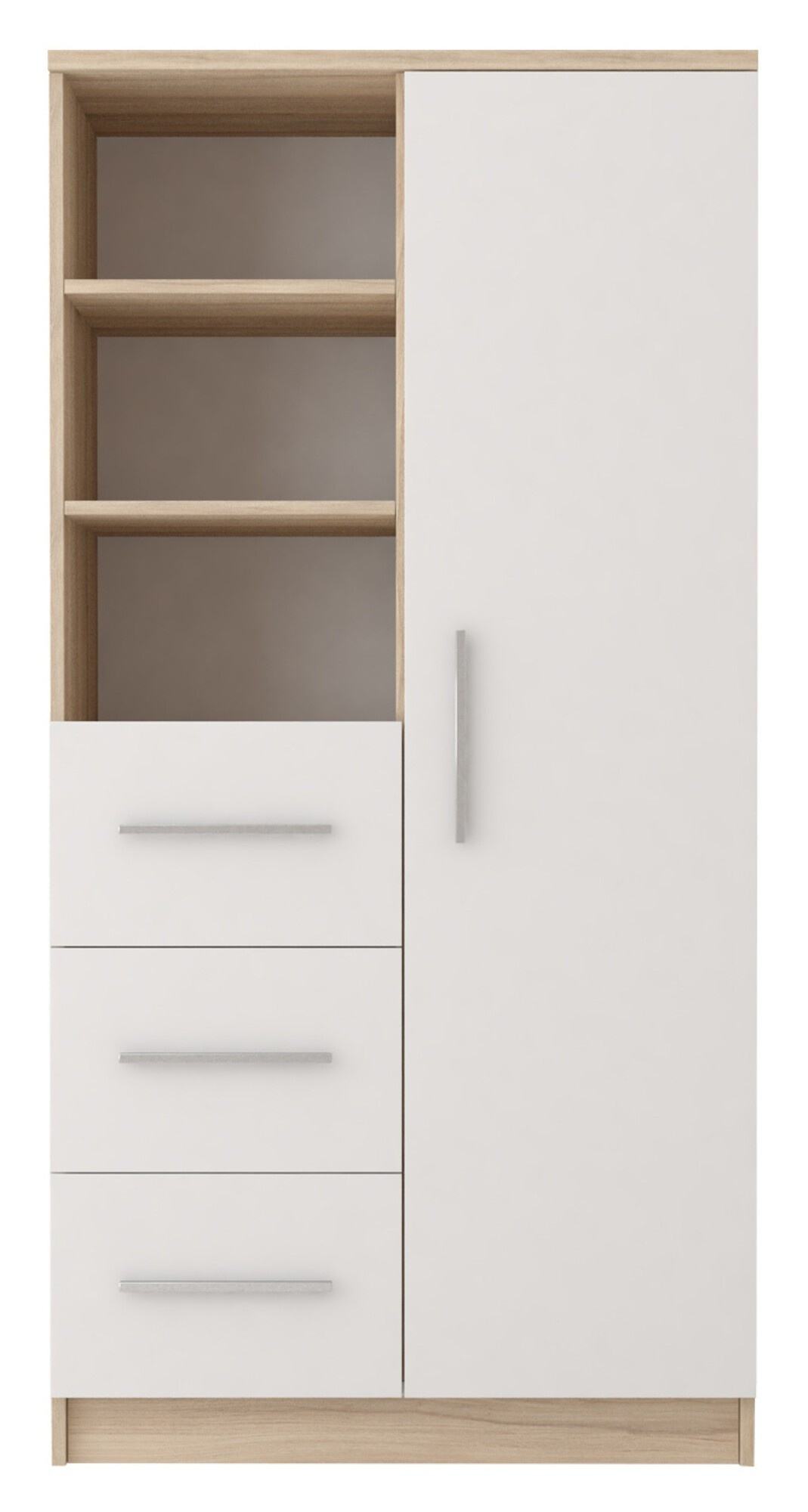Kolekce OMEGA III je kvintesencí moderního designu. Jejími charakteristickými prvky jsou nábytkové dvířka v elegantní bílé barvě, které dodávají interiéru lehkost a svěžest. Ladí s korpusy nábytku, které jsou v Dubu Sonoma a vytvářejí tak harmonický celek.