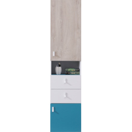Regál PLANET- PL4 L/P, bílý lux+dub+modrá
