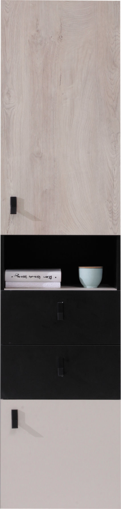 Regál PLANET- PL4 L/P, černá+dub+béžová