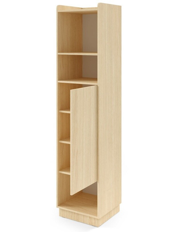 Tento regál je vybaven klasickým otvíráním, které zajišťuje snadný přístup k uloženým věcem. Dvoudveřová konstrukce nabízí dostatek prostoru pro uložení knih, dekorací nebo jiných předmětů, které chcete mít po ruce. Absence zrcadla na dveřích přispívá k čistému a minimalistickému designu, který se hodí do jakéhokoliv interiéru.