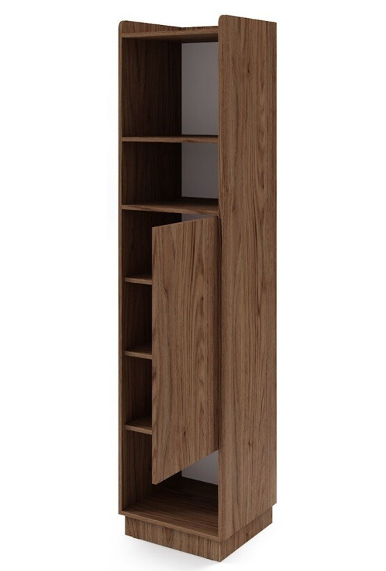 Tento regál je vybaven klasickým otvíráním, které zajišťuje snadný přístup k uloženým věcem. Dvoudveřová konstrukce nabízí dostatek prostoru pro uložení knih, dekorací nebo jiných předmětů, které chcete mít po ruce. Absence zrcadla na dveřích přispívá k čistému a minimalistickému designu, který se hodí do jakéhokoliv interiéru.