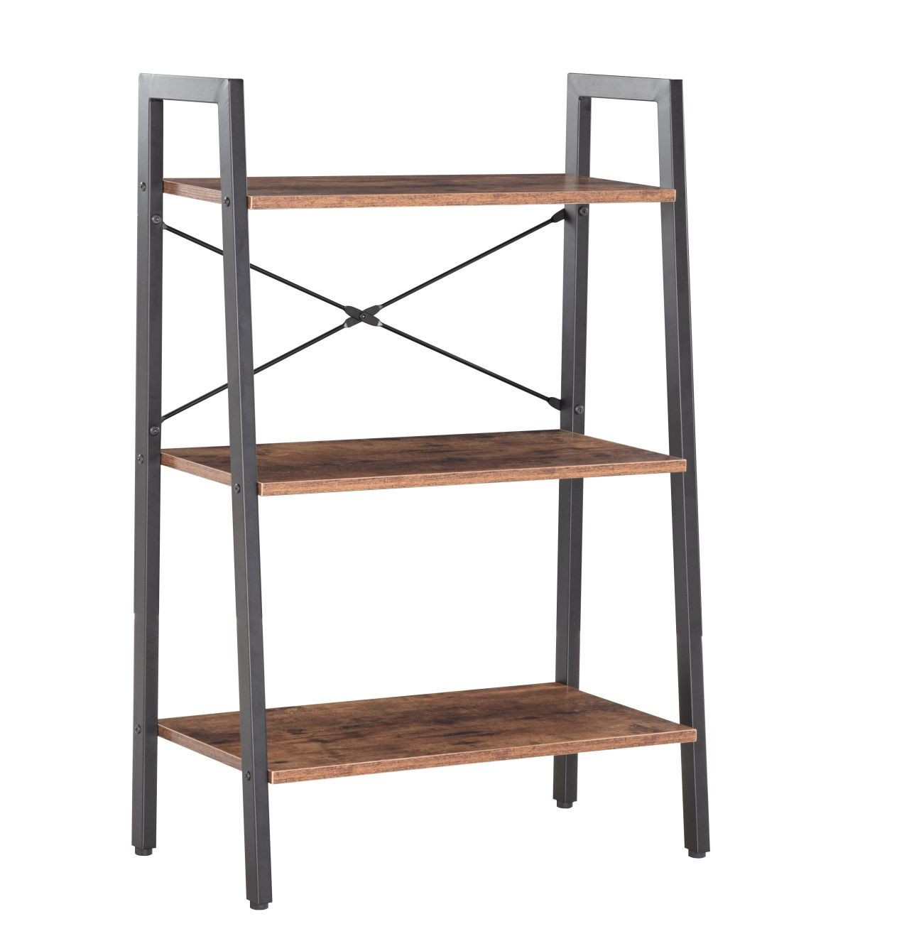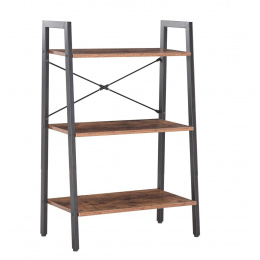 ROZMĚRY: - hloubka: 34 cm - šířka: 64 cm - výška: 97 cm MATERIÁL: - police: laminovaná dřevotříska - rám: kov s práškovým nástřikem BARVA: - police: rustikální hnědá - rám: černá