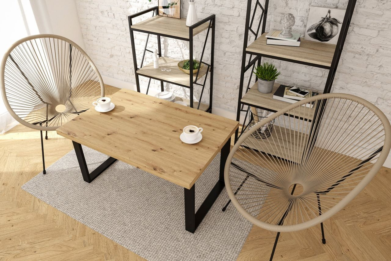 ROZMĚRY: - hloubka: 40 cm - šířka: 60 cm - výška: 99 cm MATERIÁL: - police: laminovaná dřevotříska - rám: kov s práškovým nástřikem BARVA: - police: dub sonoma - rám: černý