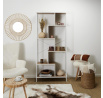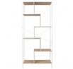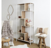 Loftový regál Rack v nejvyšší verzi je ideální nábytek do moderního obývacího pokoje. Nepravidelné police neobvyklého tvaru budou nejen dobrým místem pro ukládání, ale také designovou konstrukcí, která dodá loftový výraz obývacímu pokoji nebo pokoji teenagera. Police regálu jsou z MDF desky ozdobené dýhou imitující dřevo. Okraje polic a základna regálu se vzájemně doplňují díky jejich nátěru na bílo. Regál byl zpevněn kovovými příčkami, které se kříží v jeho zadní části. Zajímavým řešením jsou vertikální stěny regálu, které jsou rovněž vyrobeny z MDF desky. Hmotnost: 22 kg Rozměry balení: 37x20x102 cm