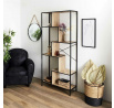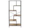 Loftový regál Rack v nejvyšší verzi je ideální nábytek do moderního obývacího pokoje. Nepravidelné police neobvyklého tvaru budou nejen dobrým místem pro ukládání, ale také designovou konstrukcí, která dodá loftový výraz obývacímu pokoji nebo pokoji teenagera. Police regálu jsou z MDF desky ozdobené dýhou imitující dřevo. Okraje polic a základna regálu se vzájemně doplňují díky tomu, že jsou natřeny na černo. Regál byl zpevněn kovovými příčkami, které se kříží v jeho zadní části. Zajímavým řešením jsou vertikální stěny regálu, které jsou rovněž vyrobeny z MDF desky. Hmotnost: 22 kg Rozměry balení: 37x20x102 cm