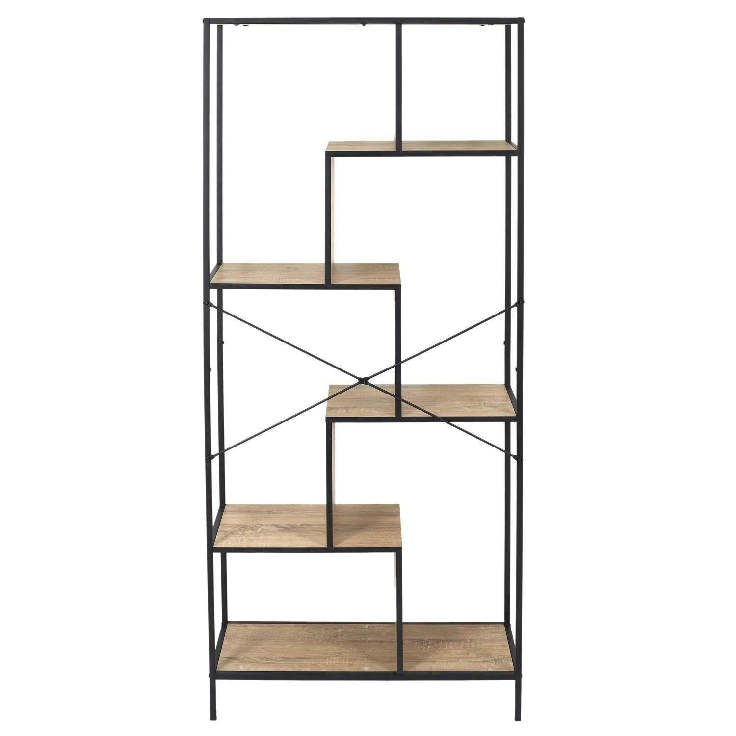 Loftový regál Rack v nejvyšší verzi je ideální nábytek do moderního obývacího pokoje. Nepravidelné police neobvyklého tvaru budou nejen dobrým místem pro ukládání, ale také designovou konstrukcí, která dodá loftový výraz obývacímu pokoji nebo pokoji teenagera. Police regálu jsou z MDF desky ozdobené dýhou imitující dřevo. Okraje polic a základna regálu se vzájemně doplňují díky tomu, že jsou natřeny na černo. Regál byl zpevněn kovovými příčkami, které se kříží v jeho zadní části. Zajímavým řešením jsou vertikální stěny regálu, které jsou rovněž vyrobeny z MDF desky. Hmotnost: 22 kg Rozměry balení: 37x20x102 cm