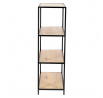 Regál Oxford I se ideálně začlení do minimalistických a loftových interiérů. Police byly vyrobeny z MDF desky zakončené laminátem v barvě dubu, které se dokonale spojují s kovovým rámem lakovaným práškovou barvou na černo. Dokonale se osvědčí v restauraci, hotelu nebo salonu.
