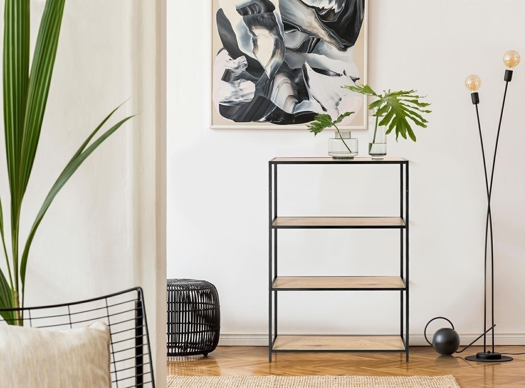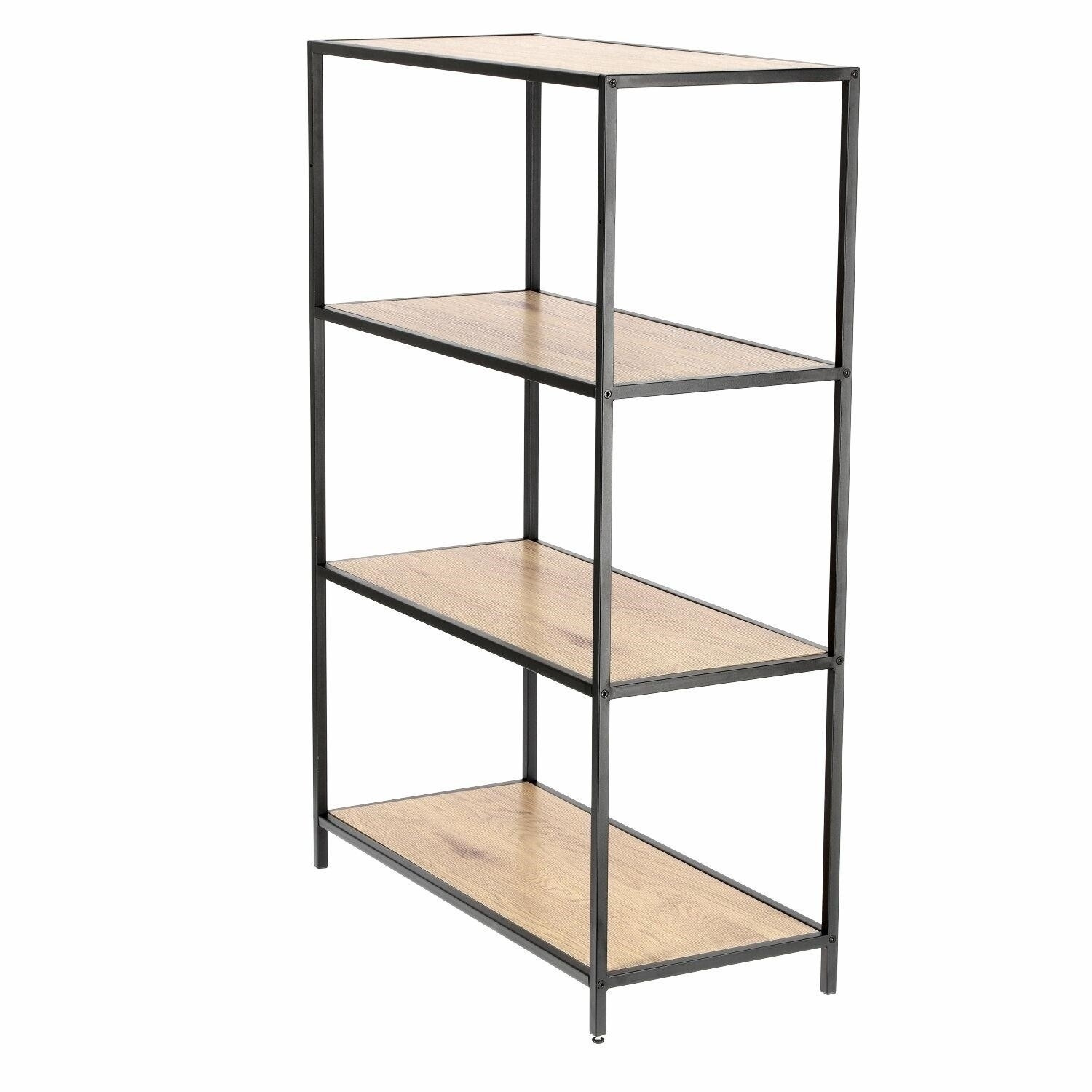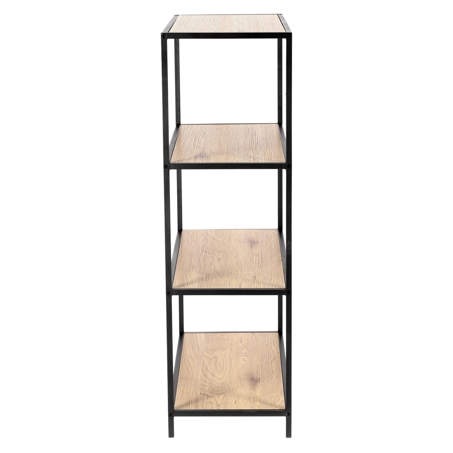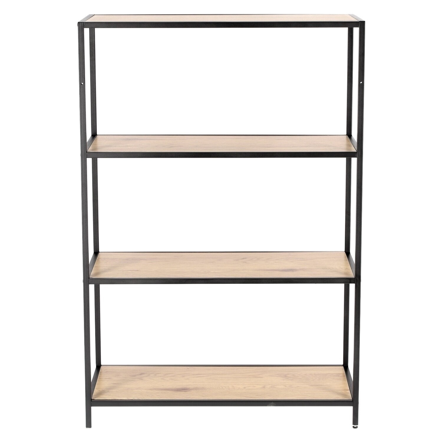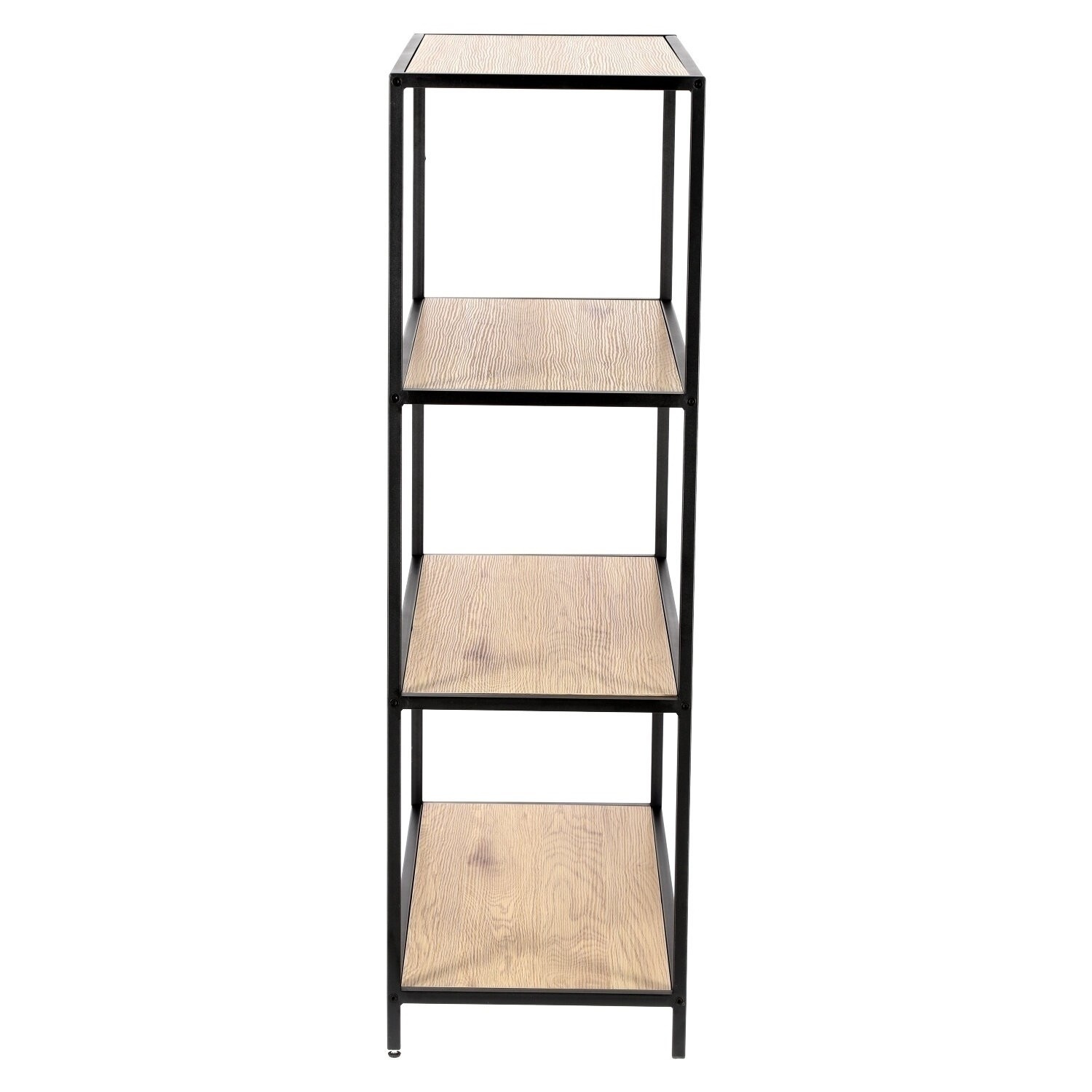 Regál Oxford I se ideálně začlení do minimalistických a loftových interiérů. Police byly vyrobeny z MDF desky zakončené laminátem v barvě dubu, které se dokonale spojují s kovovým rámem lakovaným práškovou barvou na černo. Dokonale se osvědčí v restauraci, hotelu nebo salonu.