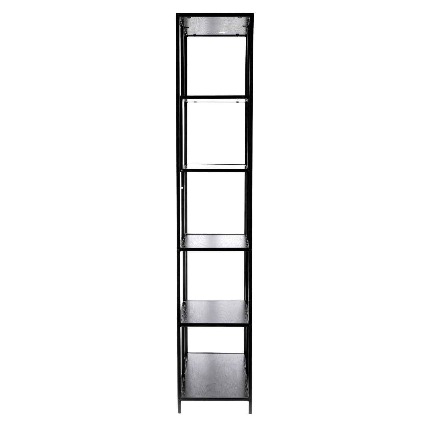 Regál Oxford II se ideálně hodí do minimalistických a loftových interiérů. Poličky byly vyrobeny z MDF desky zakončené laminátem v černé barvě a dokonale se spojují s kovovým rámem lakovaným práškovou barvou v černé barvě. Dokonale se osvědčí v restauraci, hotelu nebo salonu.