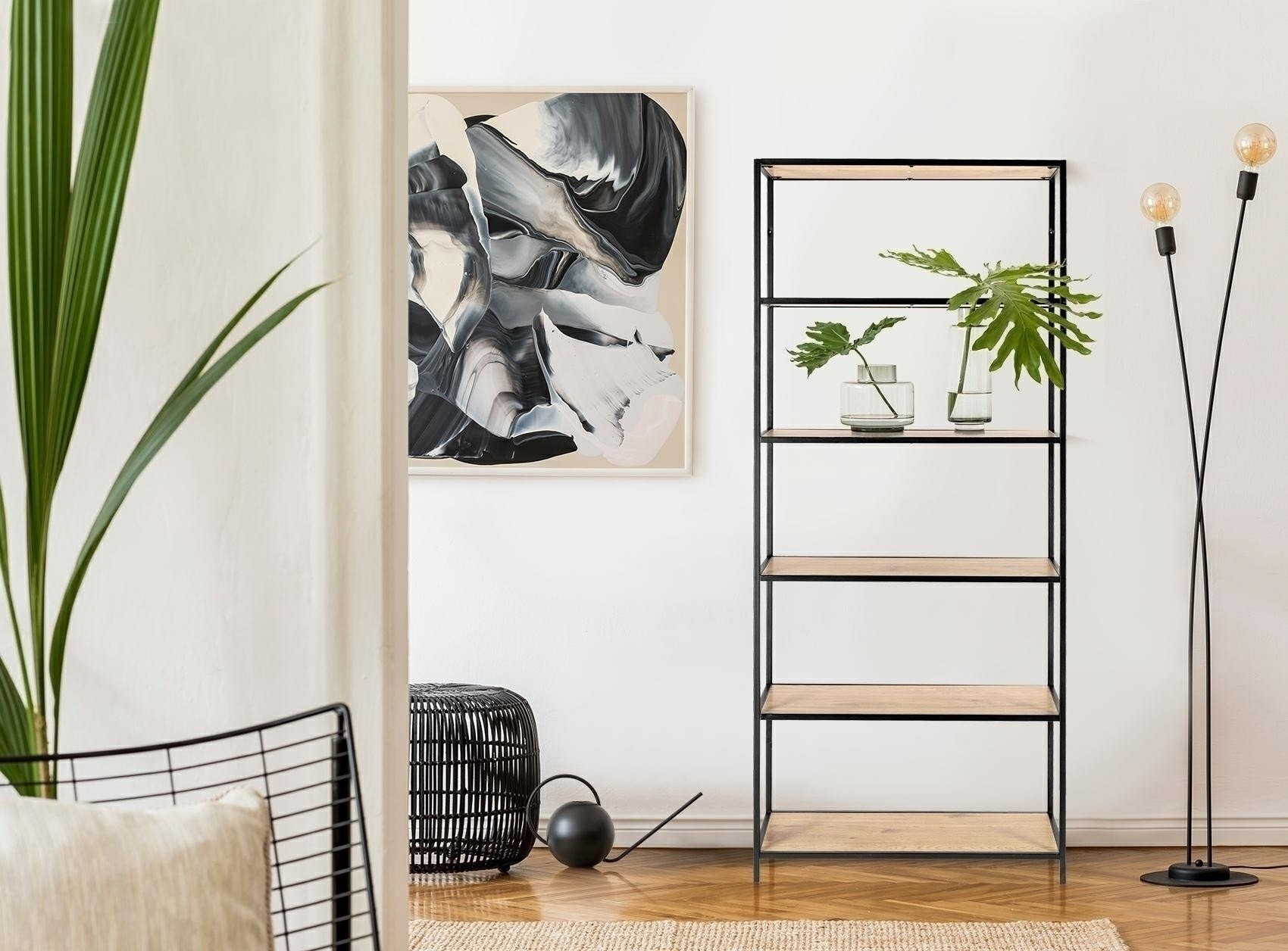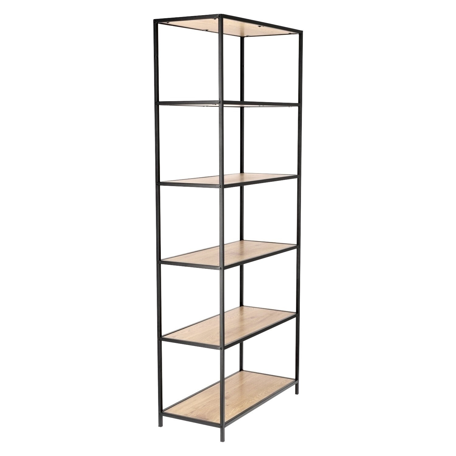 Regál Oxford IV se ideálně hodí do minimalistických a loftových interiérů. Police byly vyrobeny z MDF desky zakončené dýhou v barvě dubu, která se dokonale spojuje s kovovým rámem lakovaným práškovou barvou na černo. Dokonale se osvědčí v restauraci, hotelu nebo salonu.