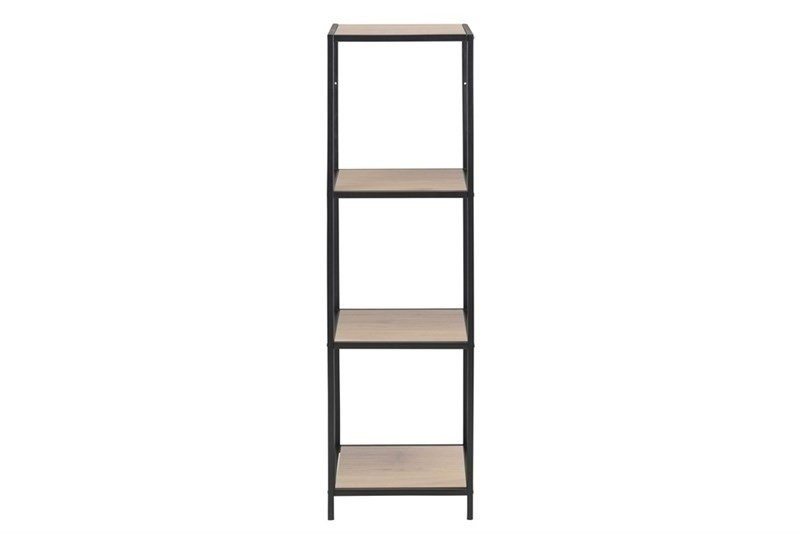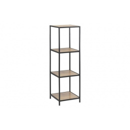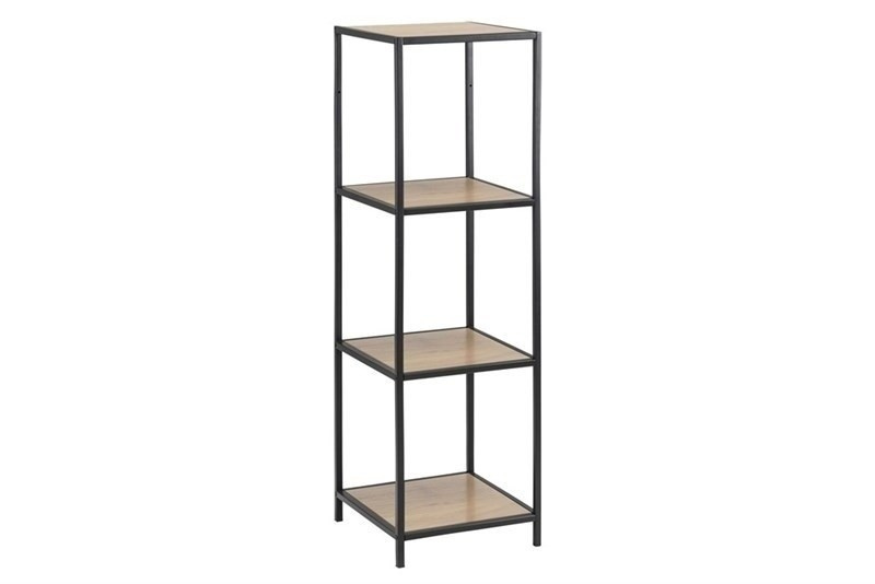Regál Seaford VI byl vyroben z kovu lakovaného práškovou barvou a MDF desky s laminátovou úpravou v barvě dubu.