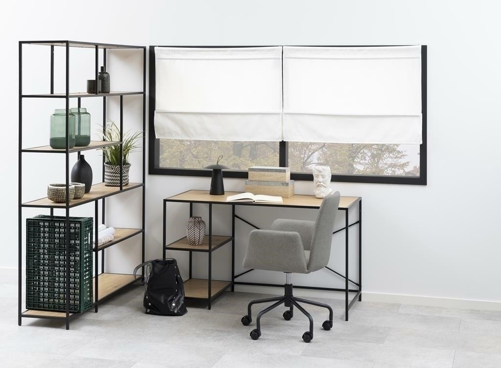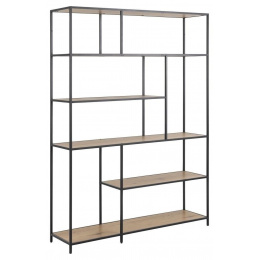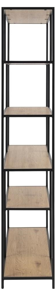 Regál Seaford XIV je vyroben z kombinace MDF desky s dýhou imitující dub a práškově lakovaného kovu v černé barvě. Má šest asymetricky uspořádaných polic, které budou skvělým místem pro knihy, fotografie nebo malé dekorace. Regál se úspěšně osvědčí v obývacím pokoji, ložnici nebo pracovně. Ideálně se hodí do interiérů v moderním, industriálním nebo skandinávském stylu. Počet kartonů: 1 Rozměry kartonů: 190,5x37,5x14cm Hmotnost kartonů: 33,3kg